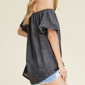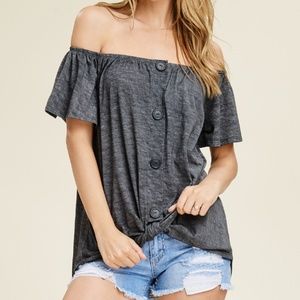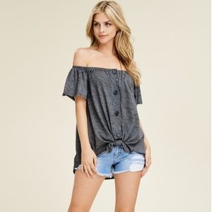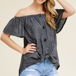 LAST Gray Off Shoulder Button Knot Top 19006