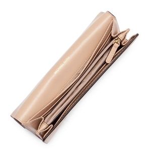 An abundance of organizational options means that this sleek leather wallet more than lives up to its carryall name! - Foldover flap with turn-lock closure - Exterior features leather construction, gold-tone logo hardware, and back slip pocket - Interior features 2 billfold pockets, 1 zip divider pocket, 2 open compartments, and 10 card slots - Approx. 3 7/8" H x 7.75" W x 1.5" D - Imported