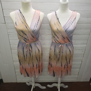 This dress is Tye Dye Summer perfection. Ladies You know wrap style dresses look great on everybody not to mention they are the most comfortable to wear. This one has the best easy laid back vibe with its soft pastel color pallet.