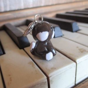 An adorable polymer clay puppy charm glazed with 3-4 coats of varnish for extra durability