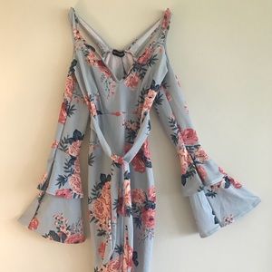 Girl! Get ready for the races in this hella cute plunging midi dress. Featuring a floral print, through layered sleeve detailing, tie waist in cold shoulder design, all eyes will be on you. Style this with your favorite strappy heals and a clutch to complete the look!