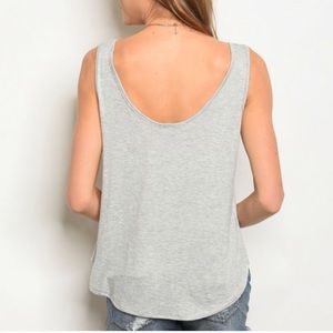 Light grey “Sorry I’m Late I Didn’t Want To Come” tank top.