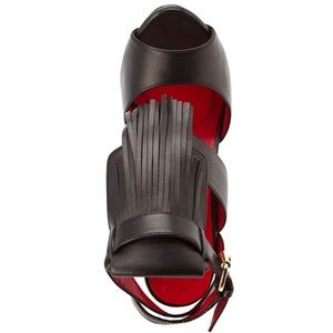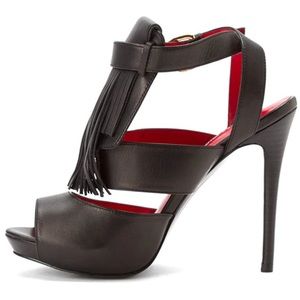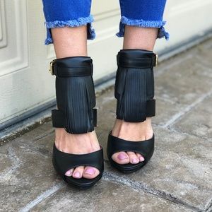 NIB Black Smooth Leather Boho Chic Tassel Heels