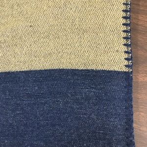 New Harve Benard Woven Whip-Stitch Blanket Poncho Shawl Wrap Multi-Color Blue Ruana With Jacquard Navy