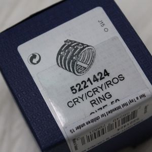 This beautiful new Swarovski ring is new in the box and is a true to size 6. It measures 52mm inside. The ring features five layers of miniature crystals and five larger crystals.  The ring is 18k rose gold plated and is resistant to scratching, corrosion, and oxidation.