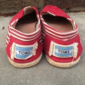 Women’s Toms size 8. Red with cream and red stripes. Super cute good condition.