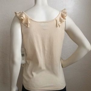 NWT luxurious soft and stretchy silk blend knit sleeveless top with ruffles.