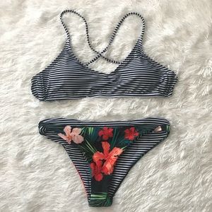 Be beach ready with this trendy flower print striped bikini set. Brand new. Bundle and save on shipping.