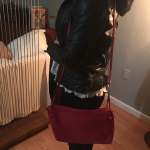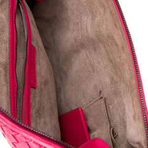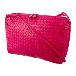 Hot pink Nappa intrecciato Bottega Veneta crossbody bag.