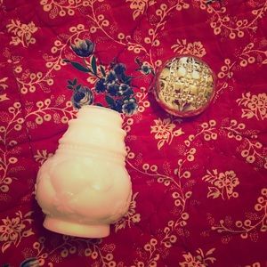 Vintage milk glass bottle with chrome lid.