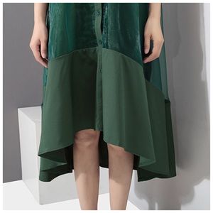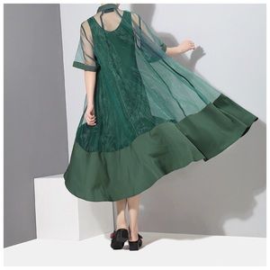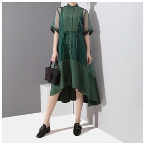 Green Sheer Fun Asymmetrical Swing Dress