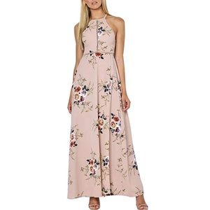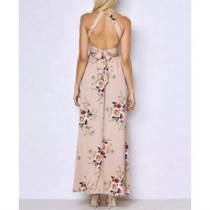 Floral Front Slit Open Back Halter Boho Maxi Dress
