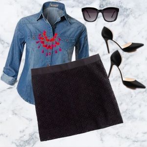 Classic black eyelet mini skirt from J. Crew with a side zip.
