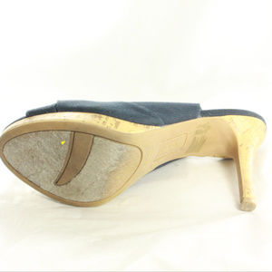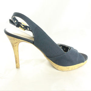 Black canvas slingback heels with peep toe inside lining and padded insole. Like new condition. No issues like holes, tears, etc.