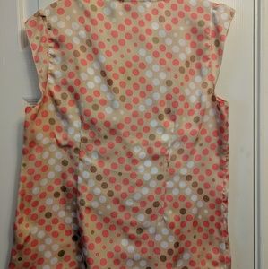 Apostrophe Polka Dot Sleeveless Top. Gently used but in good condition. Really pretty colors and sewn in darts that give this top a ruffled bottom.