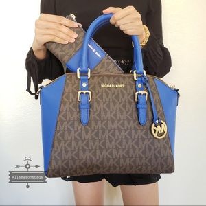 NWT Michael Kors Ciara Large Satchel Blue Wallet