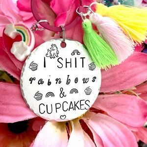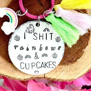 ADULT HUMOR - I Sh*t rainbows and cupcake. - Hand Stamped Keychain - Funny Gifts
