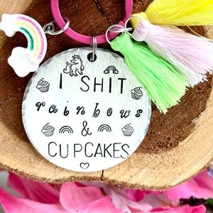 I Sh*t rainbows and cupcakes - Hand stamped keychain. Funny adult gift for friends or family!
