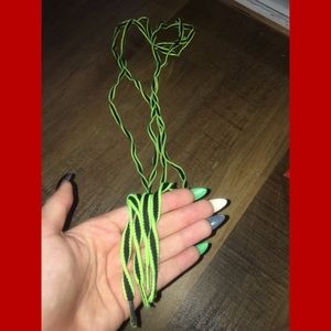 -comes with extra shoelaces, neon yellow and black. missing the tip on extra shoelaces (see on last picture)