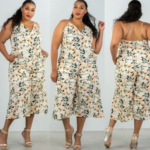 1x-3x PLUS SIZE YELLOW & FLORAL CAPRI JUMPSUIT