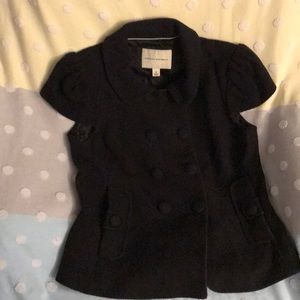 Banana Republic double breasted, button down, short and cap sleeved black blazer. Great quality, good used condition, soft silky lining, and durable material. Very comfortable and stylish blazer. Kept in a smoke free and pet free home. Worn only a couple of times.