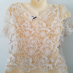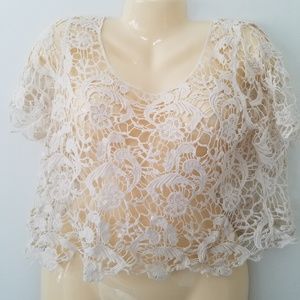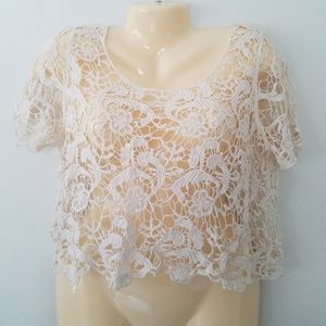 Super Cute Forever 21 Cream Crop Top. Perfect to wear with shorts. Great Condition. See through.