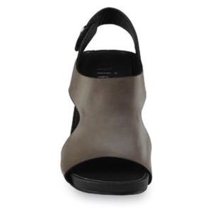 Gray Leather Cut Out Peep Toe Wooden Clog