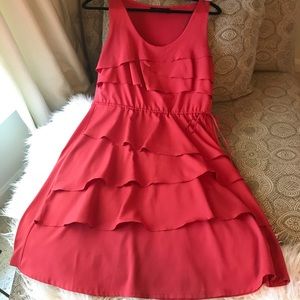 Beautiful Dark Coral Dress with Layered Skirt