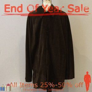 Popular Banana Republic Leather Coat—with beautiful soft lining- NEW WITHOUT TAGS—perfect for any occasion—dark brown—size large–Jacket—100% leather—Button up: 4—2 pockets outside—insulated—no flaws—NEVER WARN—fabric information👆👆