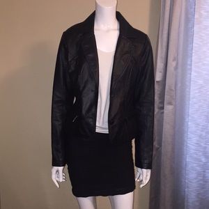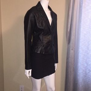 Asley by 26 international, black jacket, 100/% polyurethane, two buttons front closure, two zip front pockets. Beautiful jacket. Used very few times, look like new!