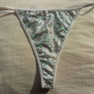 NWT Wonderful Shiny Metallic Silver Panty Thong with White Trim.
