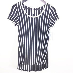 Never go wrong with stripes! Stripes throughout, high low tunic top, and round neck! Brand New With Tags!