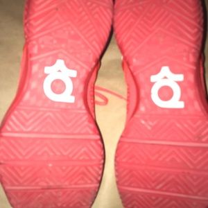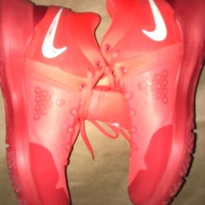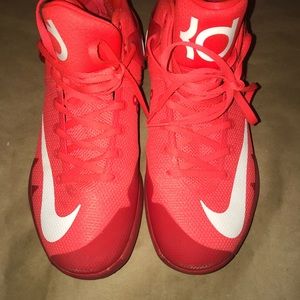 Only worn on the court! They are personalized in the pics but won’t be upon arrival unless your name happens to be Jessica. The insoles are removed also. Nike KD Size 10 in vibrant red.