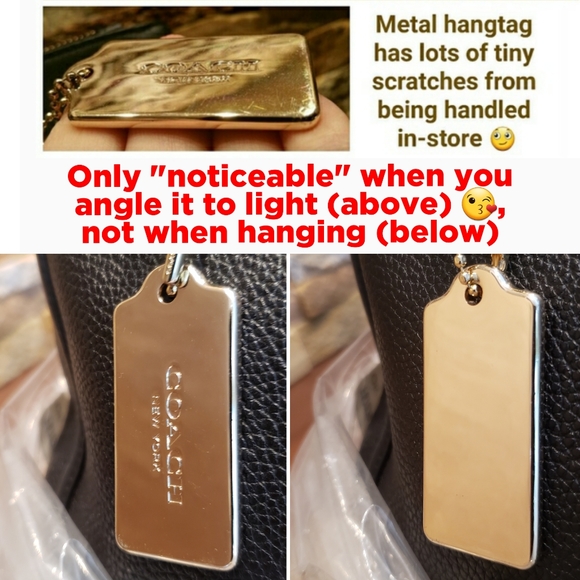 @ruuubes83 Hi Ruby...I've posted an add'l pic with the smaller wallet fyi so you can see it together with the bag. I also noticed the hangtag has slight scratches on both sides from being on display at Coach so I've posted a close-up pic :) Any questions, just let me know!
