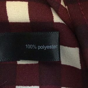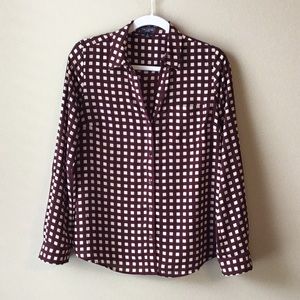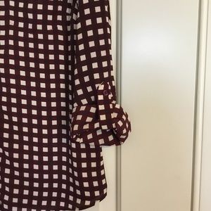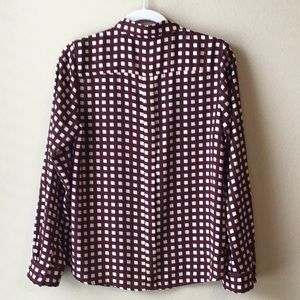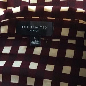 The Limited Ashton button down blouse, cream and burgundy colors, front pocket, pleated in the back, roll tab, great work blouse, wear tucked in or out, easy care, no ironing necessary, smoke free home.