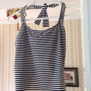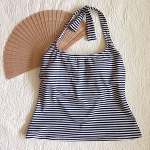 Beach House Tankini Top White Dark Blue Stripe Halter Tie Built-In Padded Bra 10