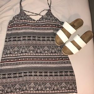 Cute sun dress with cross cross straps in the front. Super cute patterns for the fall as well that could be paired with a cute cardigan!