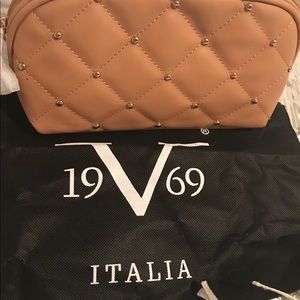 VERSACE 19 V 69 Gorgeous nude quilted small cosmetic case or use for small clutch with gold colored studs on triangle closing with a very beautiful 19 V 69 Italia with dust bag.Each is sold separately🌹authentic