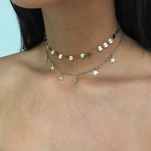 🆕 Gold Double Layer Sequin + Star Chain Choker