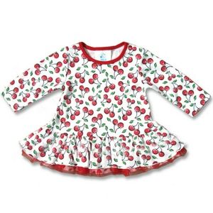 Long-sleeved dress with ruffled bottom, and 2 layers of red tulle.