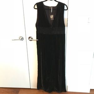 Luxe velvet jumpsuit featuring a relaxed fit with a plunging neckline and fitted waist.