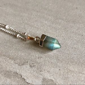 These chokers are so beautiful and so unique! They feature a dainty hexagon shaped genuine labradorite stone pendant. Gold or silver 16” chains are available. First 4 pictures are close ups to showcase the pendants, picture #5 of choker modeled on dress form gives depiction of pendant size.