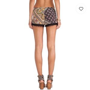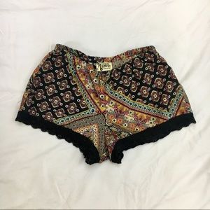 Size S Bri Lacey Shorts by Show Me Your Mumu. Gypsy Wagon color. Black crochet lace trim. Elastic waistband. Worn and cared for gently. Excellent preloved condition ✌🏽