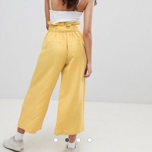 Pretty yellow colored pants with a tie and sinched waistline never been worn