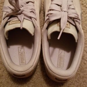 EUC only worn once. Like new they're like a tan with the gold stripe. Super comfy. They're a 7 in youth so like 8 in women because they run a little small. Feel free to ask me any questions. Make me an offer.