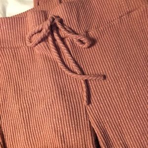 In great condition! As shown in the photo, there is a hole inside the leggings in drawstring part but it doesn’t show. It doesn’t effect functionality of the pants and I’m not sure if they actually came that way or not. These are stretchy and formfitting.