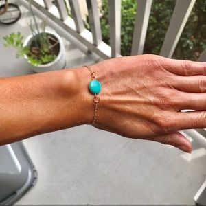 With the Gold Toned Turquoise Stone Bracelet, you will look classy & elegant!