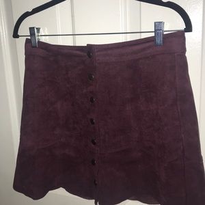 AEO Faux Suede Snap Front Scalloped Mini Skirt
