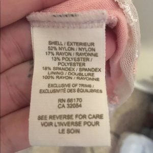 Embroidered flowers on two layers of light pink tulle with a darker pink lining
