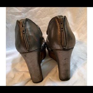 Silver and gray woven wedges. Very good condition. 4 1/2 inch heel.
